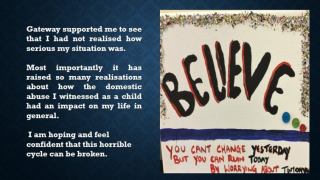 Gateway Programme Participant Feedback Artwork and Quotes from past participants.Kindly provided by men and women who have attended the group or 1-2-1 Gateway Programme to learn more about the dynamics and the impact of control and abuse within relationships.